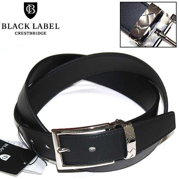 - 送料無料!新品 ブラックレーベル クレストブリッジ シャドーチェックバックル レザーベルト 黒 牛革 サイズ調整可BLACK LABEL CRESTBRIDGE