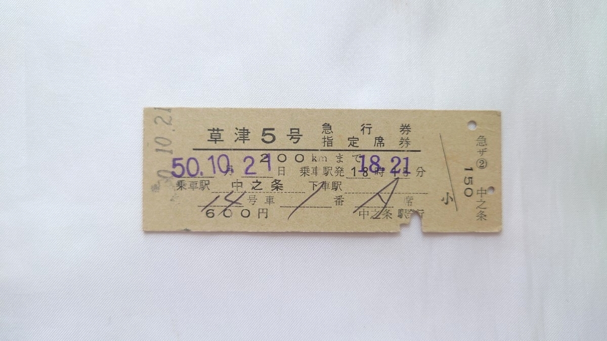 - ★国鉄★中之条発 草津5号急行券指定席券★D型硬券昭和50年