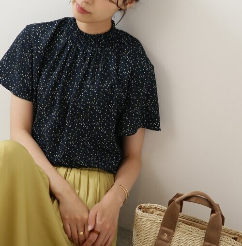 - 新品 SHOO・LA・RUE/DRESKIP ランダムドットシャ-リングブラウス ネイビー(193) 03(L) 定価2198円