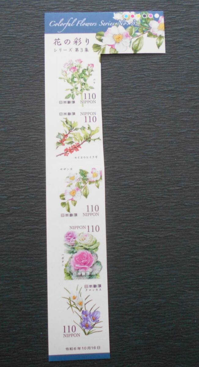 - ライフ・花~ししゅう~歌えないことりといのちの木-ツバメの季節-ブラックベリー-タンポポ・ひなげし2024 未使用110円シール切手5種類