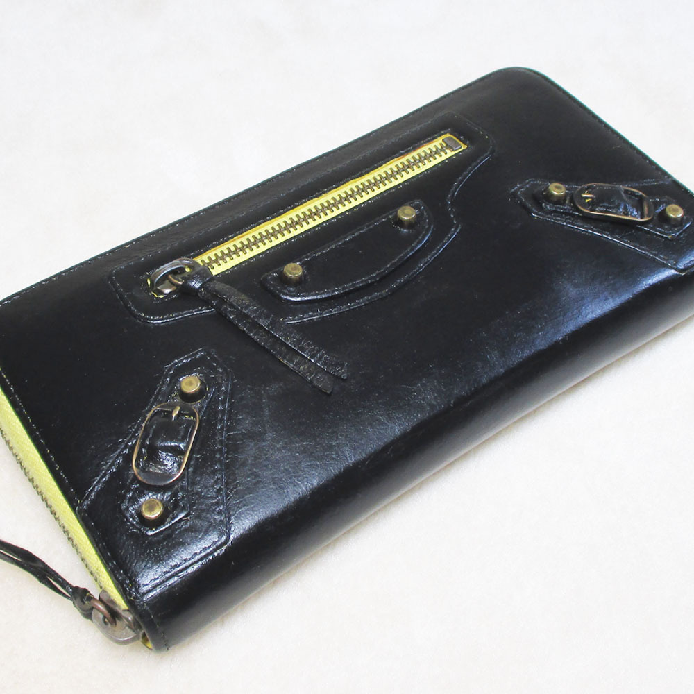 - BALENCIAGA バレンシアガ ラウンドファスナー長財布 ブラック×イエロー