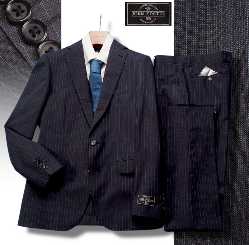 - 新品訳8.6万円 大手百貨店扱い 春夏『ジョンフォスター 英国製生地』 ウール100% ストライプ スーツAB7灰(C) 1512471