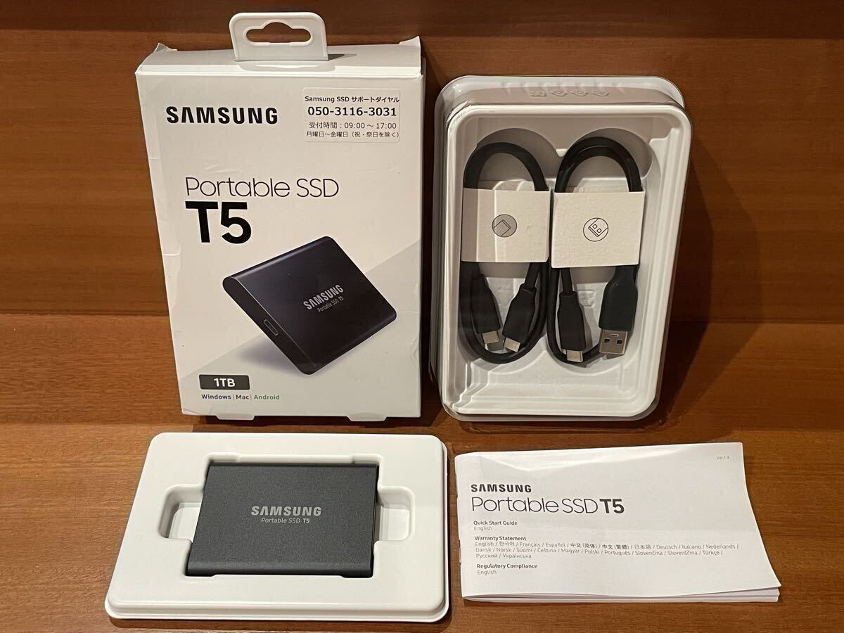 - 未使用 ? 確認の為通電 SAMSUNG サムスン Portable SSD T5 1TB MU-PA1T0B/IT ポータブル 外付けSSD