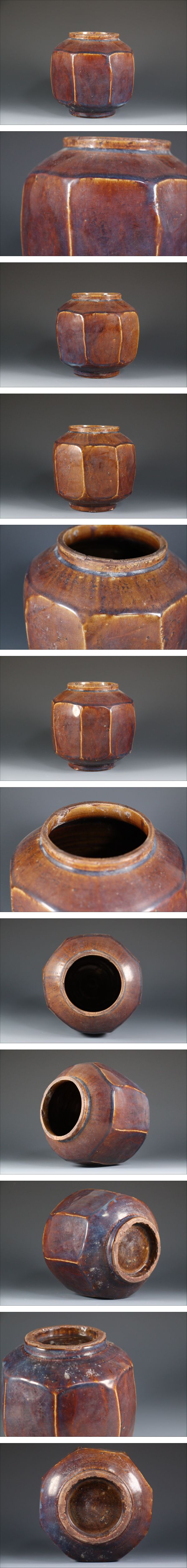 - 蔵出し品 李朝 古朝鮮 飴釉 面取壷 A592
