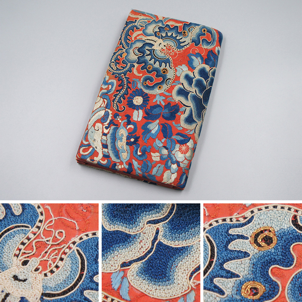 - 【中国美術】 ★ 民俗 紅綢地蝶恋花紋手包 ★ 清朝期 胡蝶 牡丹 刺繍文様 明清織繍 検 清代清時代李朝古布古裂古美術古玩古董骨董唐物