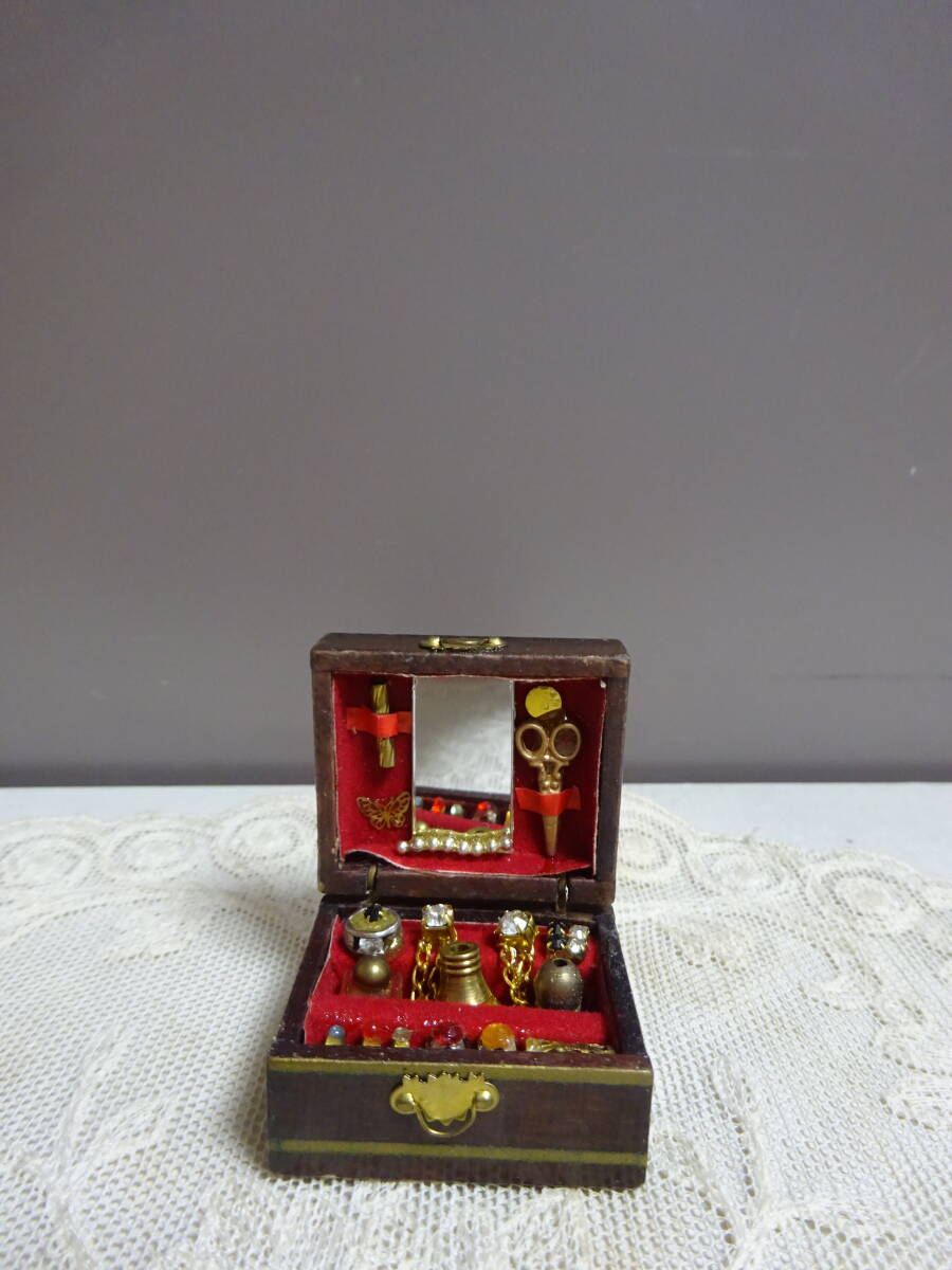 - 1/6doll size『レトロ ミニチュア 木製 ジュエリーボックス/裁縫道具』1/6dollドールハウス~アクセサリーボックス~♪