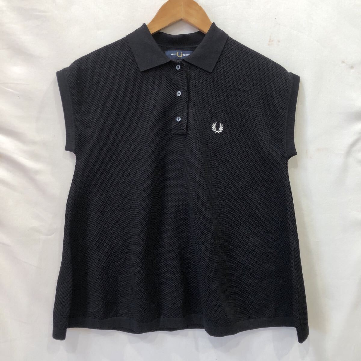 - ts20220729【FRED PERRY】フレッドペリー ノースリーブニットポロシャツ FZ5413 ブラック カットソー レディース