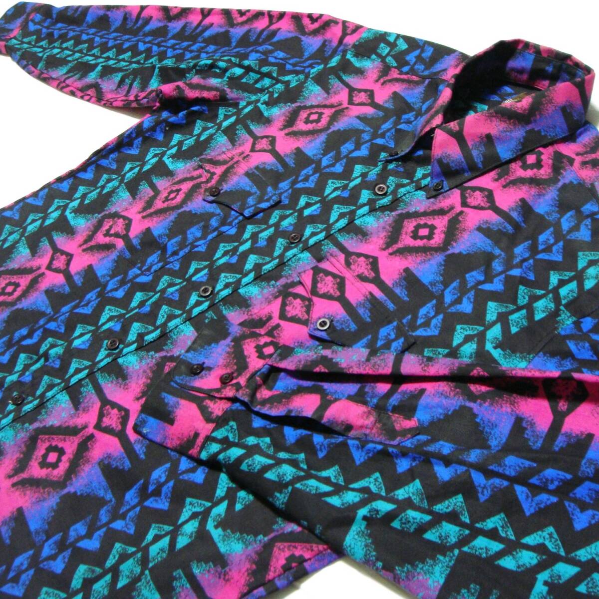 - ■美品 ^^ 送料無料 【 ネイティブ柄 ストライプ ウエスタンシャツ XL 】 OUTLAW (ウエスタンブーツ ハット 製造) 民族 メキシカン o7