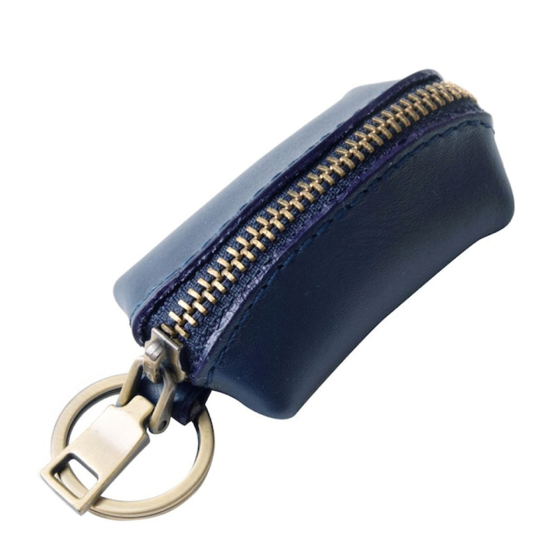 - 【訳あり】本革ミニ財布 コインケース メンズ キーリング付 YKKファスナー 小銭入れ 軽量 コンパクト ネイビー