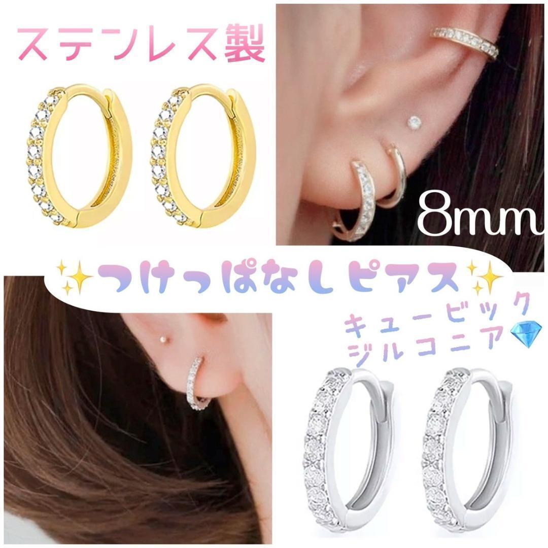 - 送料無料★akeeeeey★ 再入荷♪【アレルギー対応】ステンレスキュービック ミニフープ 8mm_F3|つけっぱなしOK ジルコニアピアス