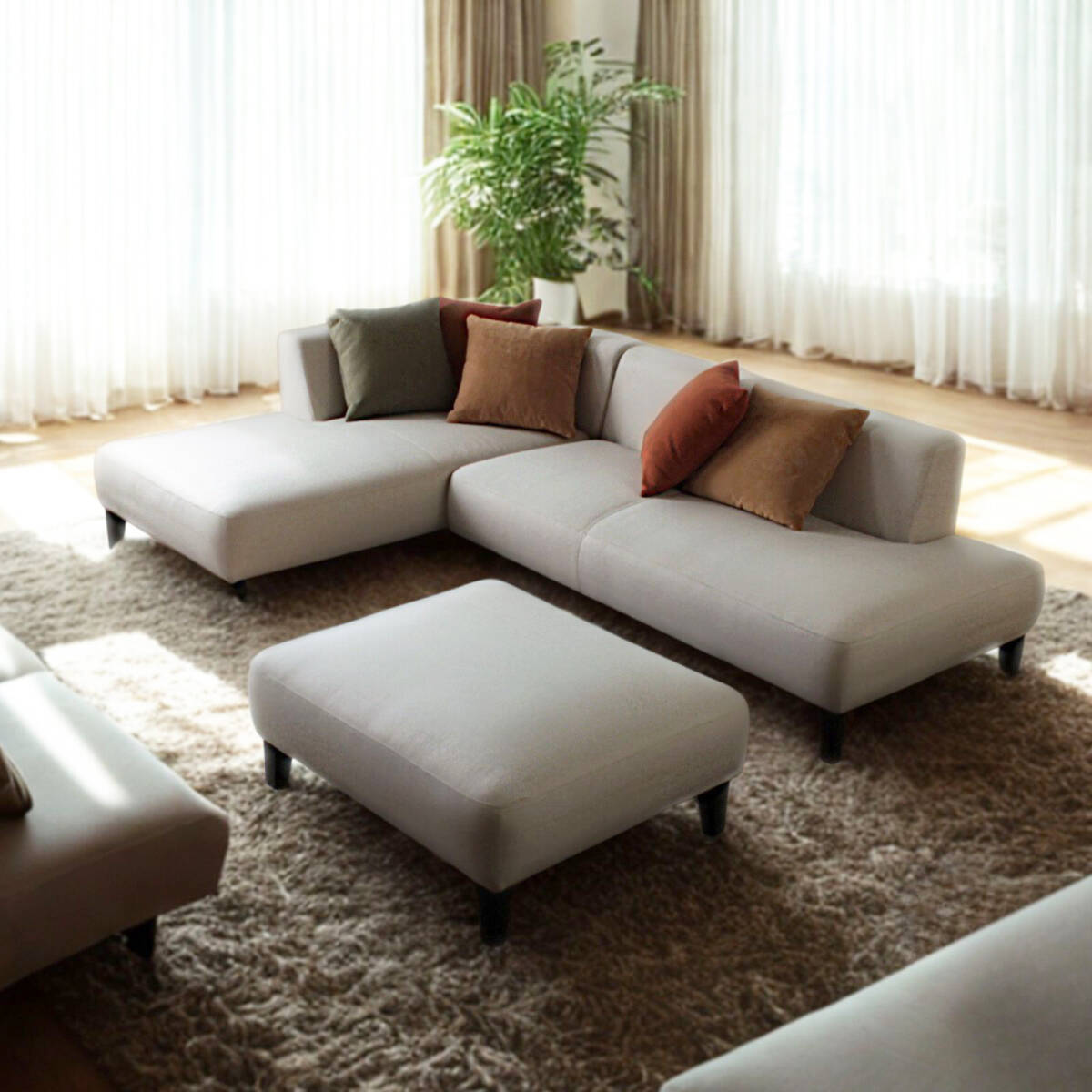 > 送料無料 ソファー ソファ カウチソファ 3人掛け コーナーソファ L字 アイボリー系 幅249cm 【カウチ座:座って右】ファブリック 179E-2pco