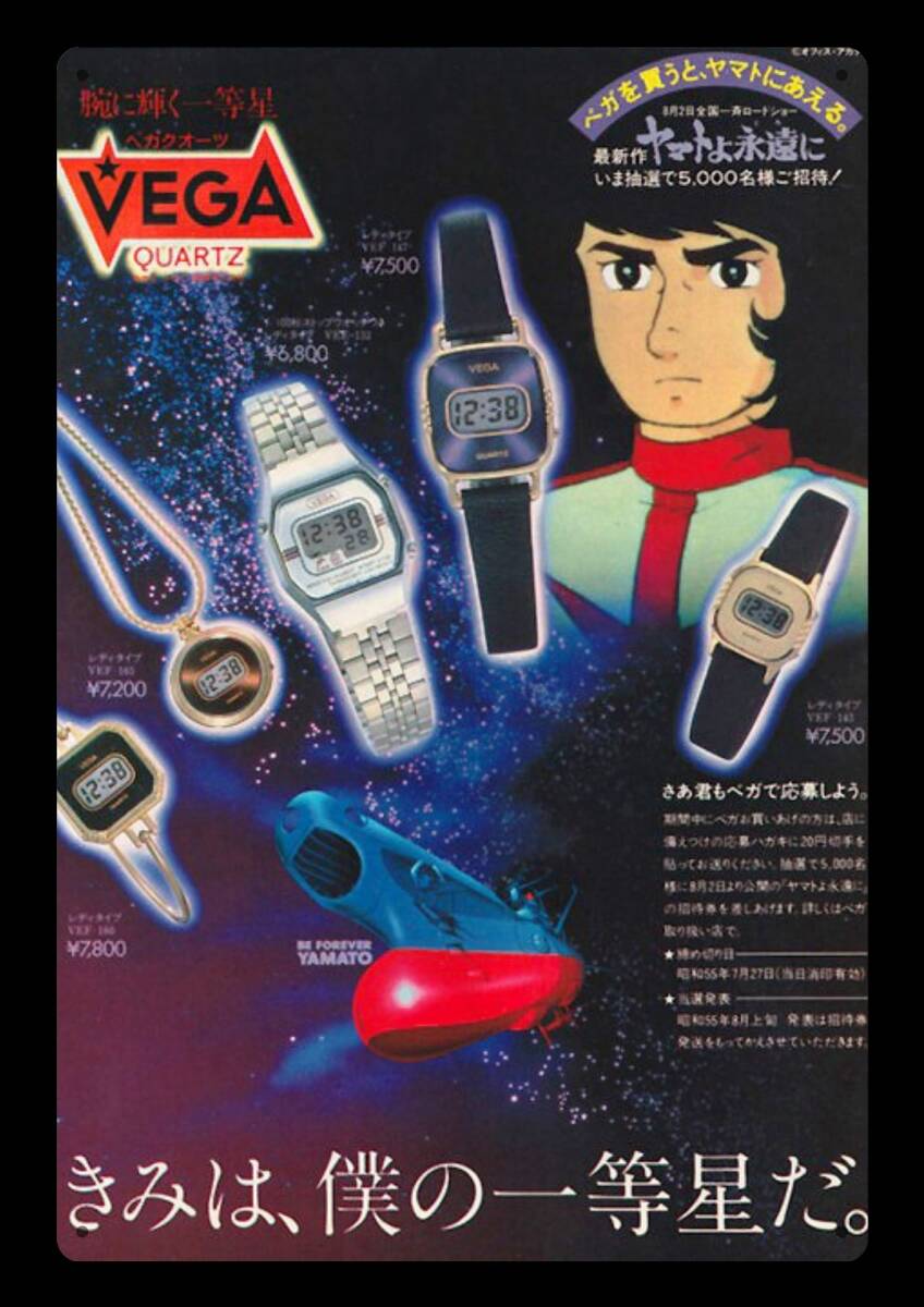 - 大型サイズ!! 60cm×40cm★VEGA時計 昭和レトロ広告★懐かし看板シリーズ★メタル看板★送料無料・匿名配送