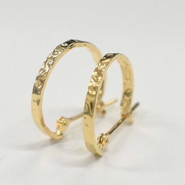 - 【18金】フープピアス幅1.5mmシンプル 凹凸仕上げ K18YG