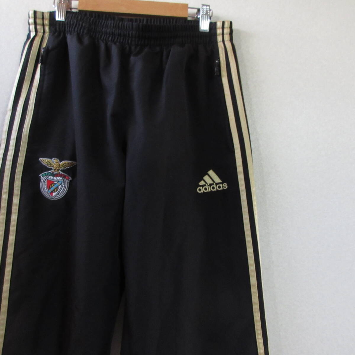 - ○良品 adidas アディダス◆サッカー スペイン ベンフィカ ウォームアップパンツ 3本ライン◆メンズ ブラック/ゴールド Lサイズ