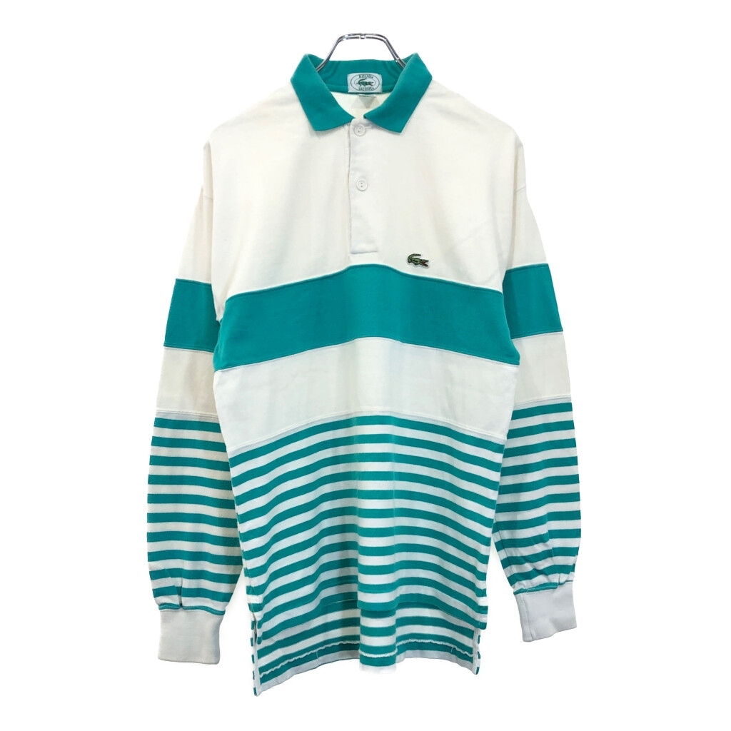 > 90年代 IZOD LACOSTE アイゾッド ラコステ 長袖ポロシャツ バイカラー ボーダー ホワイト(メンズ S)中古 古着 U9027