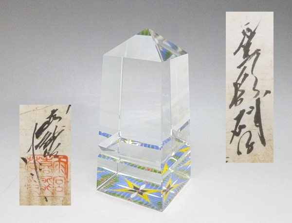 > 《ジャムルK》◆kks0730-140◆雨宮喜能登 窯彩硝子 文鎮 ペーパーウェイト クリスタル ガラス 約580g 工芸ガラス 作家物