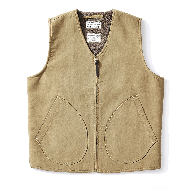 - USNワーク ボア裏地付きで防寒性も抜群 ヴィンテージ復刻デッキベスト◆メンズ アメカジ ジレ S~XXL カーキ