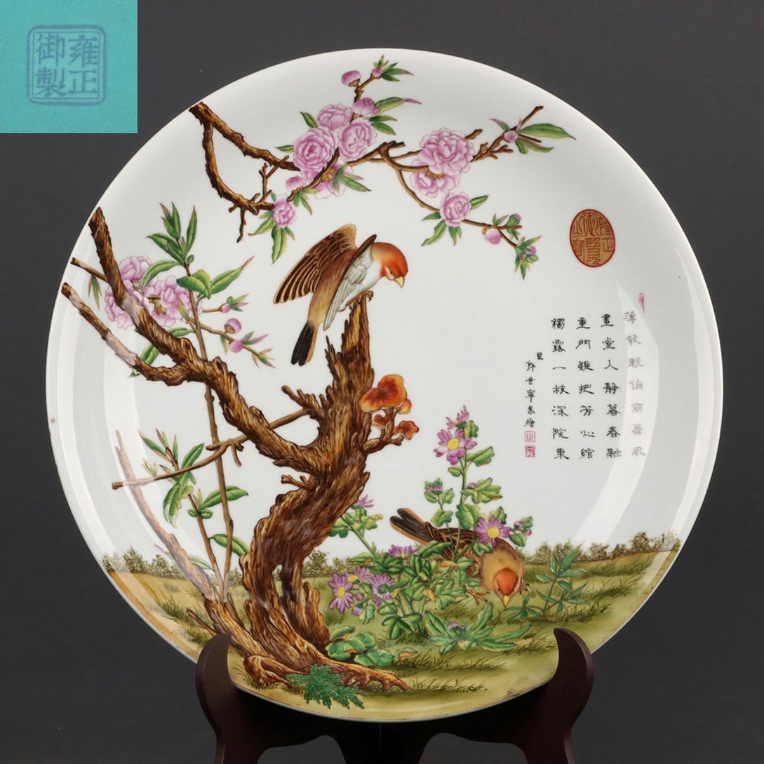 - ▼渡鶴羽▼M7014清雍正 琺瑯彩描金郎世寧貢絵花鳥紋賞盤・時代物・古陶磁・古賞物・旧家買出品