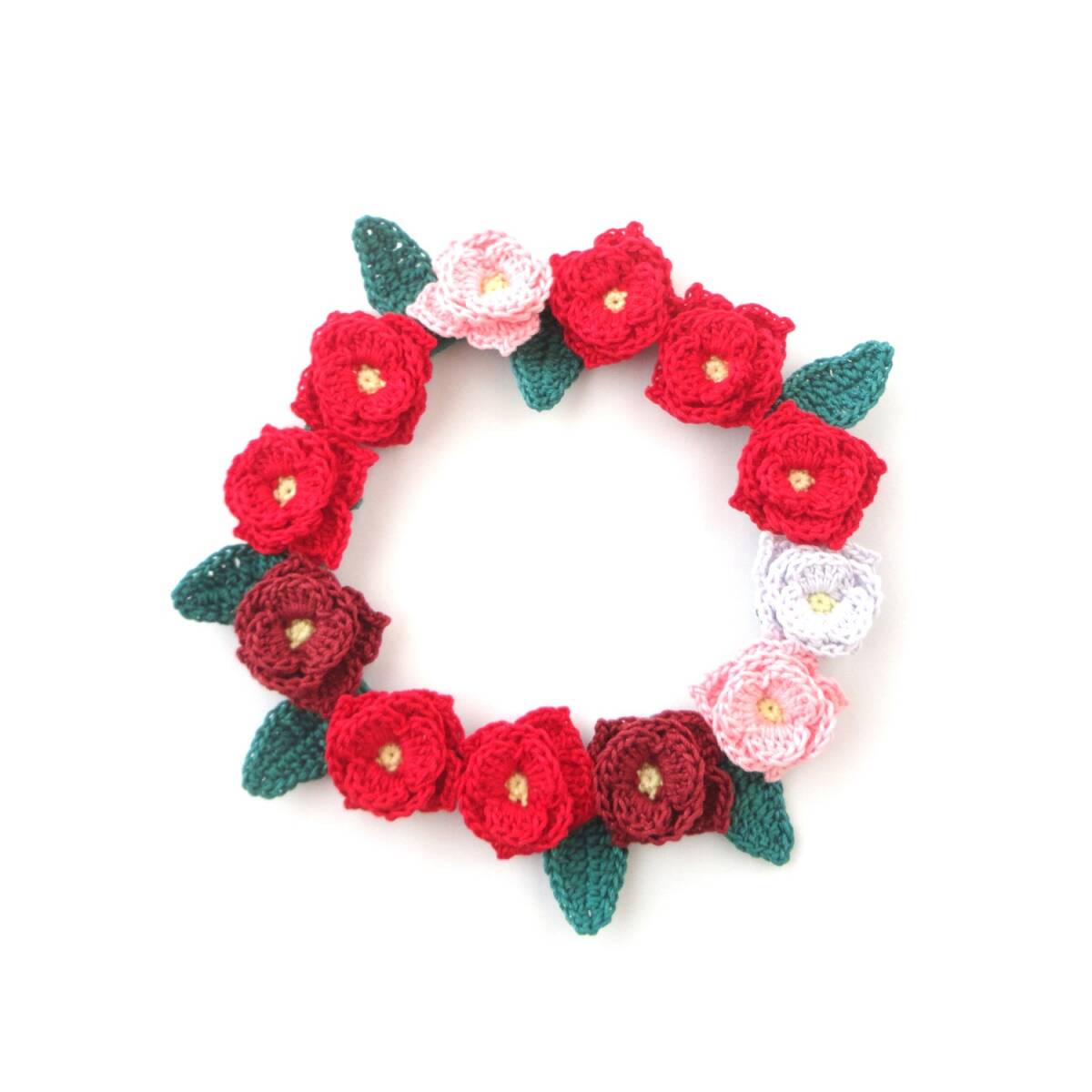 - 華やかなバラのリース*ワイヤーリース*RD*レース編み*ハンドメイド*b863
