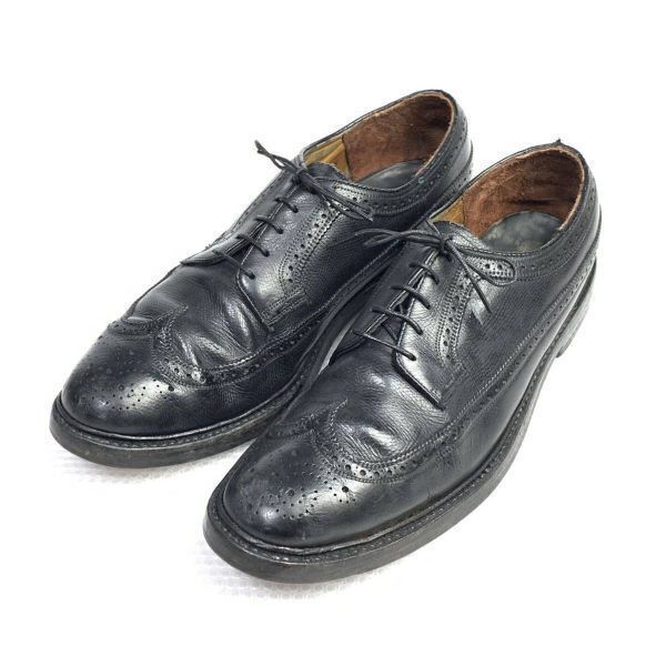 > 1970~80s? ビンテージ★ブランド不明★サイズ10 B★26.5~27.5cm★ロングウイングチップ アメリカンブローグ★黒 ブラック◆is7-35