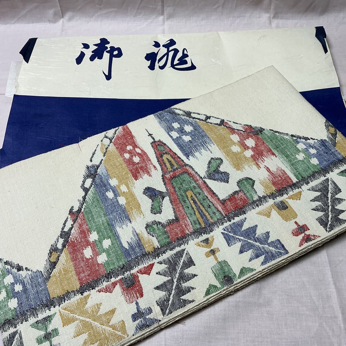 - 【L8B407】未使用品 しつけ付 名古屋帯 八寸 紬 白地 カジュアル 和装 着物 和服 たとう紙