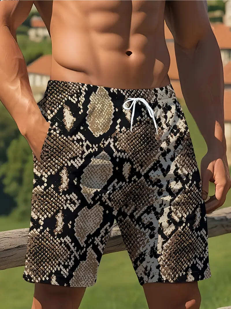- 夏物 ド派手 パイソン柄プリント ハーフパンツ 033 半ズボン 短パン ヤクザ ヤンキー 悪羅悪羅 オラオラ系 部屋着 服 メンズ ファッション