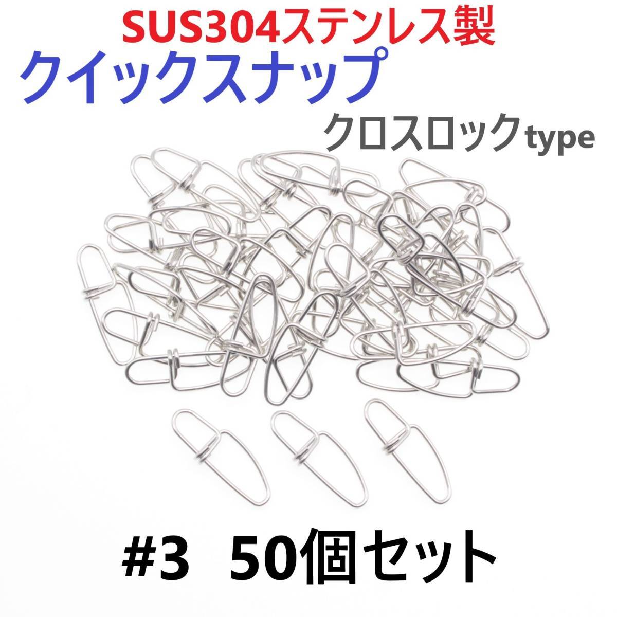 > 【送料150円】SUS304 ステンレス製 強力クイックスナップ クロスロックタイプ #3 50個セット ツインロック エギング ルアー 防錆 スナップ