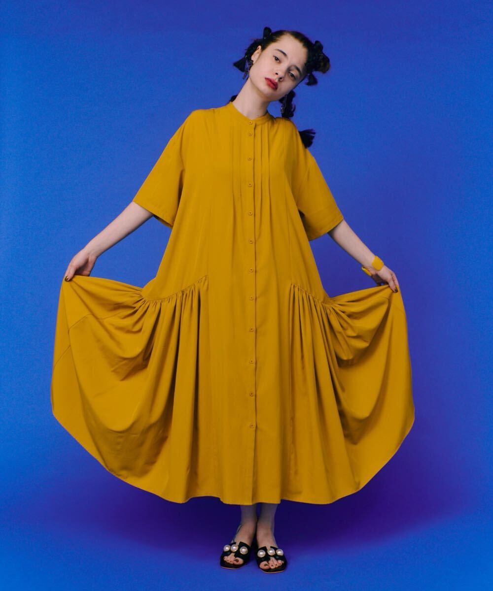 - マニャーナスエルテ サイドギャザー ワンピース イエロー 半袖 無地 フリー