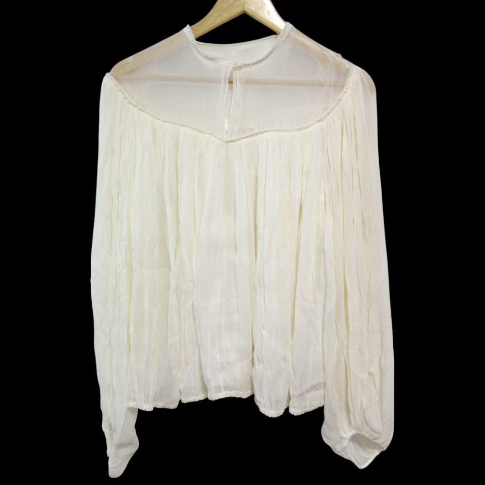 > 美品 Chloe クロエ シルク100% 長袖 シアーブラウス シャツ CHC20SHT8400610840 サイズ40 オフホワイト