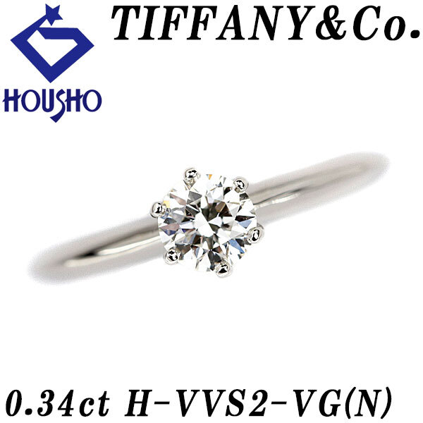 > ティファニー ソリティア リング 0.34ct Pt950 一粒石 6本爪 グレード付き 鑑定書 送料無料 美品 中古 SH121698