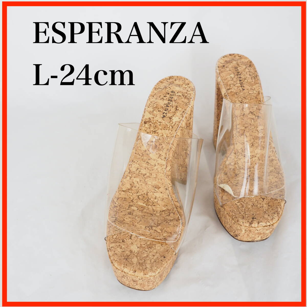 - OK4818*ESPERANZA*エスペランサ*レディースサンダル*L-24cm*クリア×ナチュラルベージュ(コルク調)