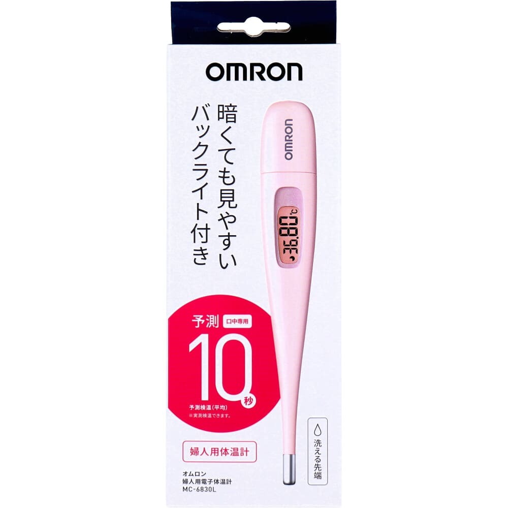 ▼▼▼▼▼▼注意事項▼▼▼▼▼▼・送料込み(送料700円が商品価格に含まれています) 一部地域では追加送料あり。・お取り寄せ商品です。弊社にて手配後、メーカー・卸業者からの直送になります。・まれにメーカー欠品、出荷遅延等が発生致します。問題発生時は別途メールにてご連絡致します。・配送方法の指定、日時指定、置き配、ギフト対応、他商品との同梱配送などは対応できません。・まとめ買いや複数購入の場合は通常より発送に時間が掛かる場合がございます・複数個口の場合、2階以上への搬入ができない場合があります。(その場合は1階での受け渡しとなります)・大型連休、お盆、年末年始などは発送をお休みさせていただく場合がございます・メーカー都合により、パッケージは予告なく変更される場合がございます・梱包用のダンボールはリサイクル品を使用させていただきます。・注文に関するご連絡(注文確定通知・発送通知など)はメールでご案内させていただきます※商品ページの内容について、少しでもご不明な点などがございましたら購入前に一度ご連絡ください▲▲▲▲▲▲注意事項▲▲▲▲▲▲〇商品説明予測検温(平均)10秒。実測検温できます。●口中専用。●バックライト。●フラット感温部。●洗える先端(※感温部から約5cm)。●電池交換可能。●前回値メモリ。●収納ケース付。●抗菌樹脂。●オートパワーオフ。●お知らせブザー。【管理医療機器】医療機器認証番号:230AGBZX00058000販売名:婦人用電子体温計 MC-6830Lシリーズ(管理医療機器ですが、販売免許の届出がなくても販売可能です。)【仕様】電源電圧:DC3V(リチウム電池CR1220×1個)電池寿命:約1100回(予測検温)/約500回(実測検温)(※オムロンヘルスケア社試験条件による。)測定方式:予測・実測測定範囲:32.00〜42.00度測定制度:±0.05度(35.00〜38.00度)/±0.10度(32.00〜34.99度、38.01〜42.00度)(※オムロンヘルスケア社試験条件による。)使用環境条件:(周囲温度)+10〜+40度、(相対温度)30〜85%RH保管環境条件:(周囲温度)-20〜+60度、(相対温度)10〜95%RH本体質量:約14g(電池含む)外形寸法:幅20.1×長さ136.8×厚さ12.8mm付属品:お試し用電池(リチウム電池CR1220×1個、内臓)、収納ケース、取扱説明書【注意】★警告・検温結果の自己判断はしないでください。症状の悪化につながることがあります。治療は医師の指導に従ってください。・乳幼児の手の届かないところに保管してください。★注意・製品の保証は、日本国内での使用の場合に限ります。・ご使用の際は、取扱説明書をよくお読みのうえ正しくお使いください。〇商品仕様個装サイズ:63X185X25mm個装重量:約57g内容量:1個入製造国:中国【製造販売元:オムロンヘルスケア株式会社】(出典:オムロンヘルスケア)