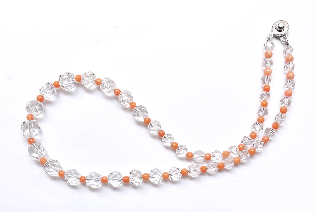 - ミラーカット水晶・ピンク珊瑚グラデーションネックレス