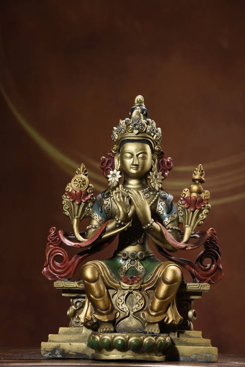 - 『館蔵珍品 銅製 金鍍 彩繪 彌勒菩薩像 仏像 宗教 仏教古美術 供養品』稀少珍蔵品 古賞物 貴重物品 収蔵品 中国古美術 時代物 古董品