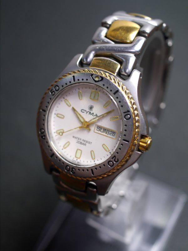 - シーマ CYMA クォーツ 3針 デイデイト 純正ベルト 男性用 メンズ 腕時計 ab410 稼働品