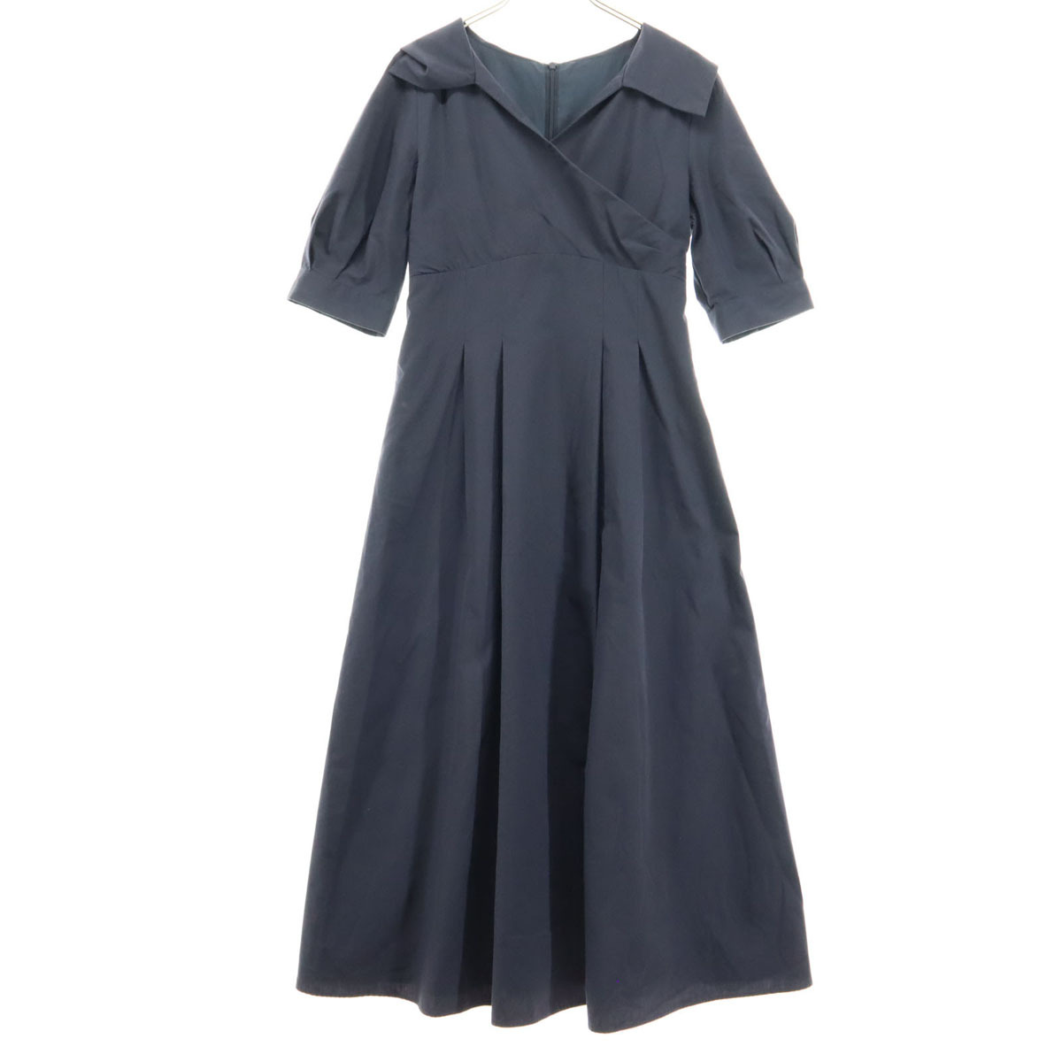 > 美品 NATURAL BEAUTY BASIC ナチュラルビューティーベーシック 半袖 ロングワンピース PS ネイビー レディース
