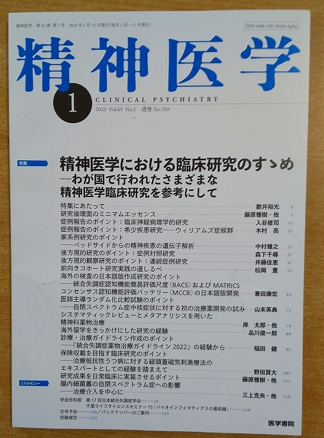 - 精神医学 2023年 1月号 特集 精神医学における臨床研究のすゝめ わが国で行われたさまざまな精神医学臨床研究を参考にして