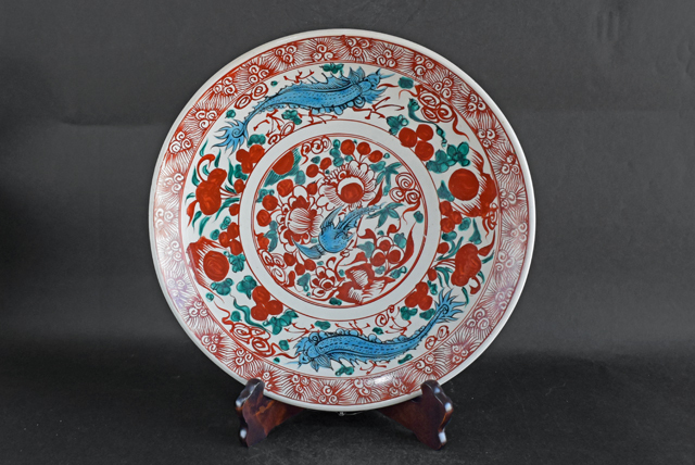 - 犬山焼 尾関作十郎 作 赤絵 大皿 約33㎝