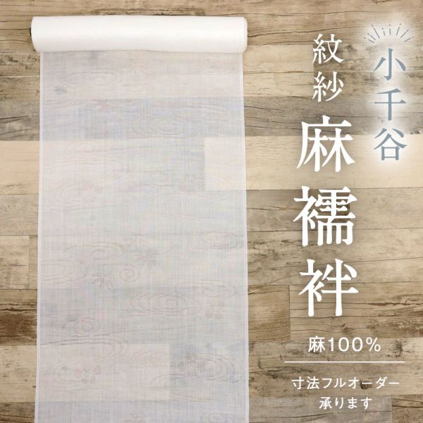 > 【反物】 夏の麻襦袢 『小千谷』 長襦袢 紋紗 流水に竹梅 白 お仕立て可 反24-303