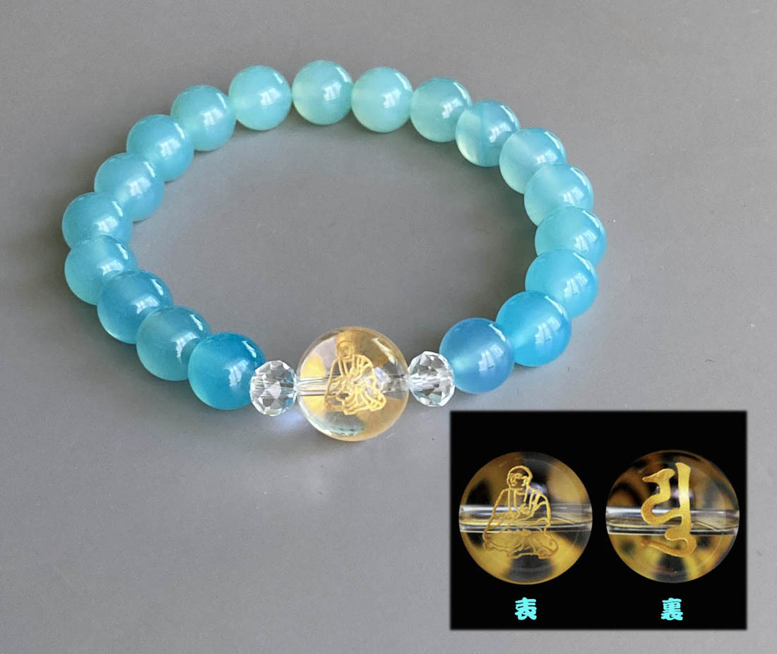 - 弘法大師(空海)彫刻 ブル-瑪瑙 ブレスレット