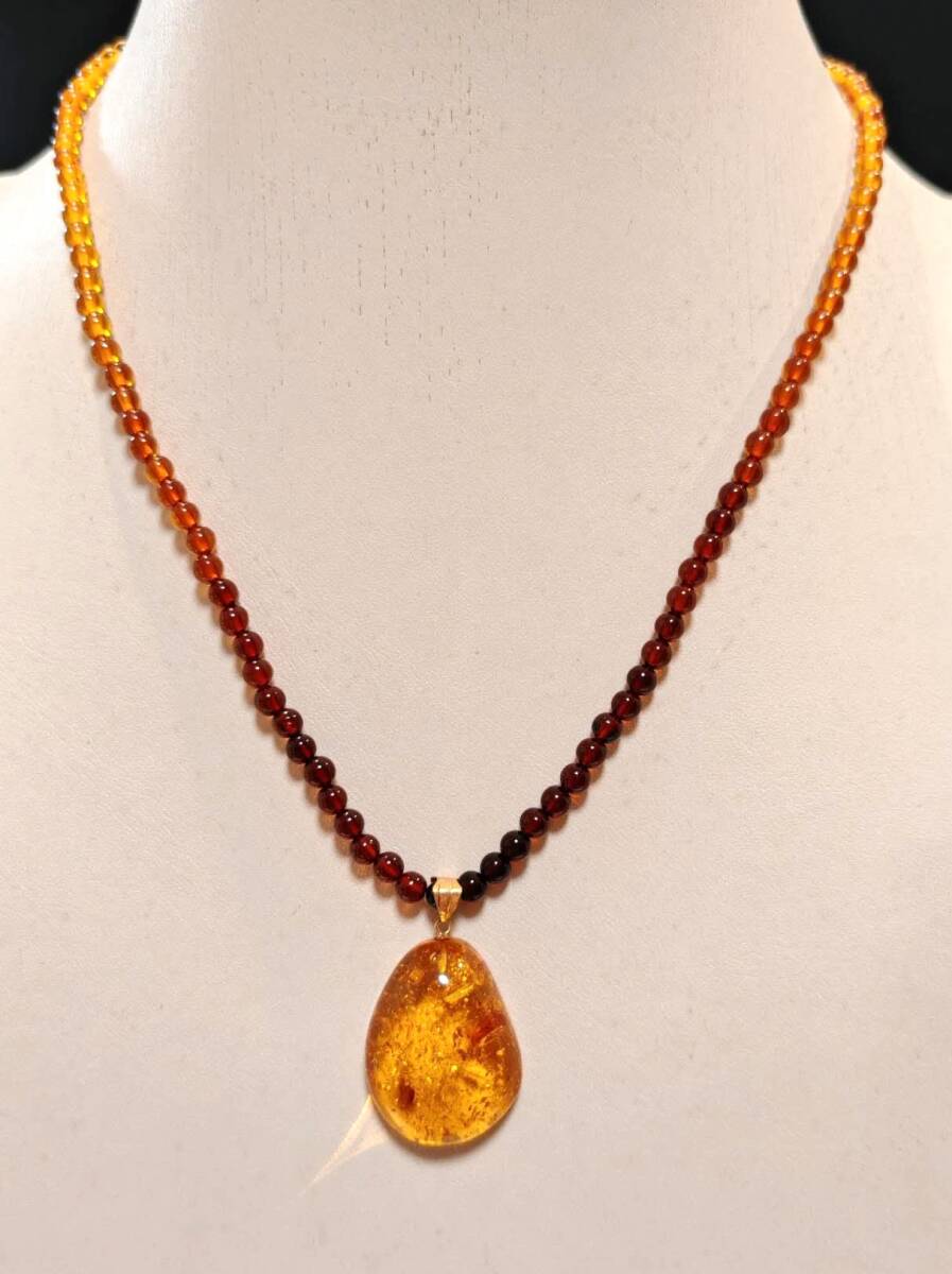 - 琥珀ネックレス・しずく型琥珀 (アンバー) ネックレス・地金: K18・珍品