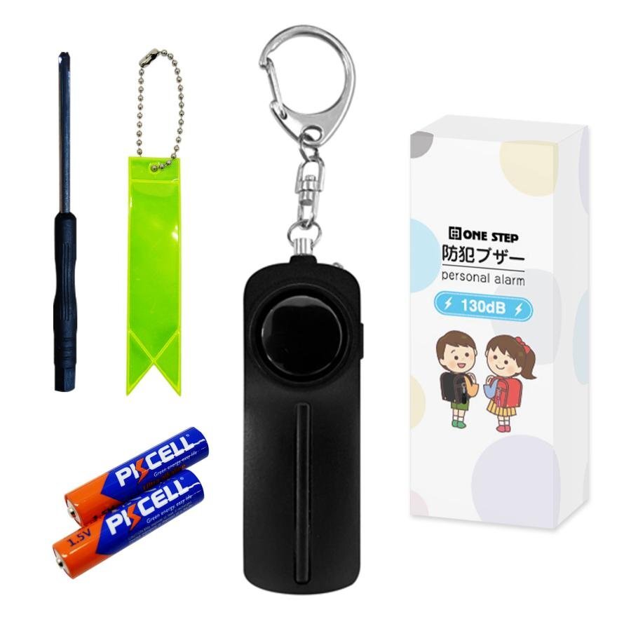 - 防犯ブザー 大音量 女性 小学 LEDライト 防水 130db 電池付き 反射板 キーホルダー 反射板テープ ブラック