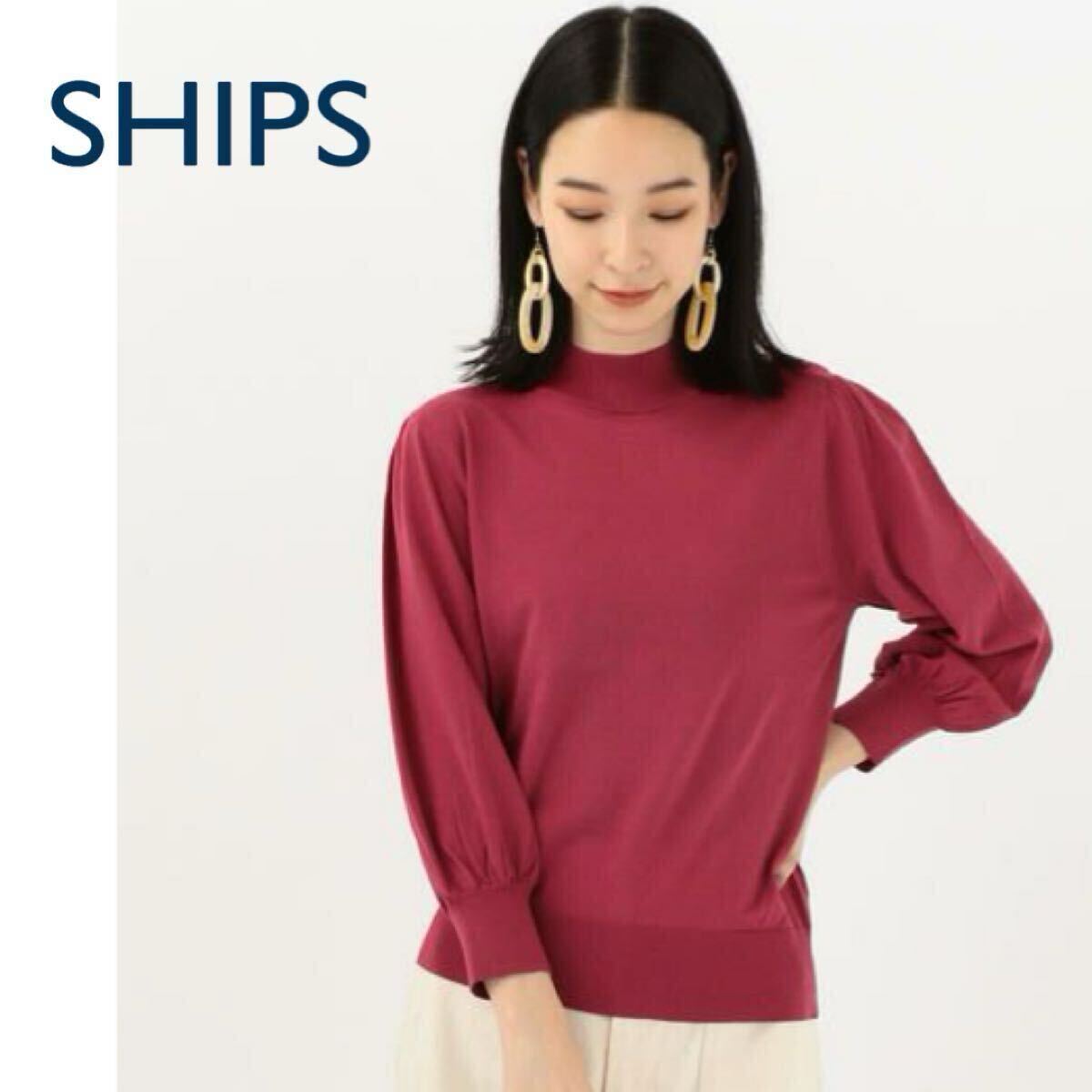 > 【SHIPS】シップス 定価1.5万 洗える ハイネックボタンプルオーバー フリーサイズ ピンク系 レディース ニット セーター ドライタッチ