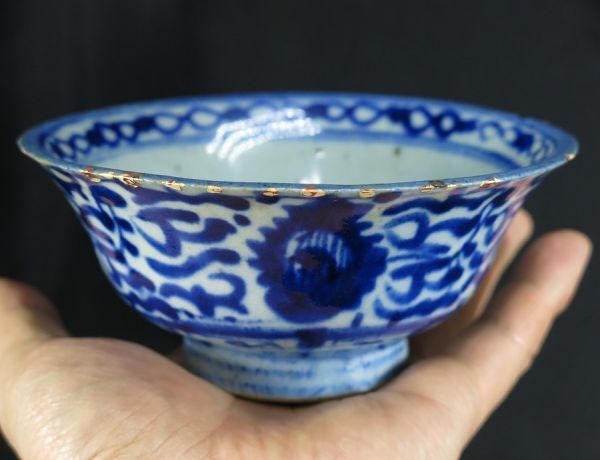- 2e 清朝纏枝牡丹文染付端反碗 清時代 磁器 /新渡 有田 細首壺 唐草文 色絵 豆彩 粉彩 白磁 染付 青花 呉須 青磁