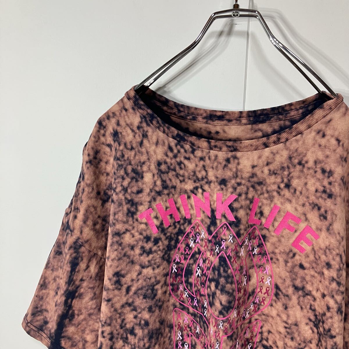 - 古着 アート 両面 プリント クルーネック 半袖 Tシャツ 大きいサイズ 一点物 ローズ ネイビー