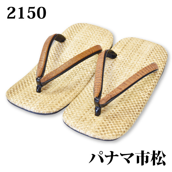 - 雪駄 草履 メンズ 男性 和装 【 2150 】 パナマ市松雪駄 鼻緒イグアナ柄 牛本皮底【 Lサイズ】