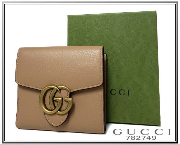 > ☆新品同様 未使用 展示品 GUCCI/グッチ 二つ折り財布 GUCCI GG マーモント レザー ウォレット 782749 送料税込み!