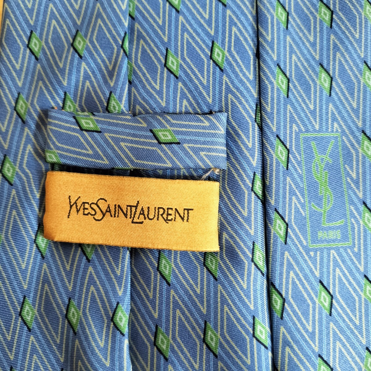 - イヴサンローラン(YVES SAINT LAURENT)青緑ミニ四角模様デザインネクタイ