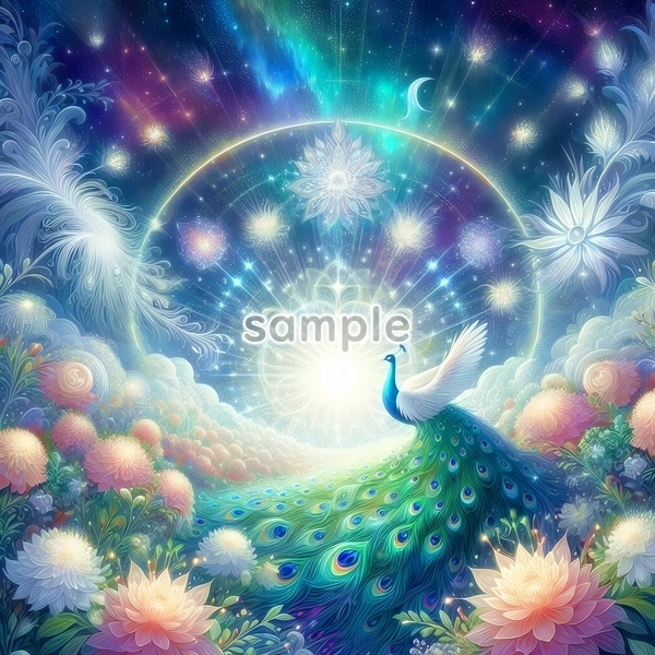 - A3 350dpi 孔雀 緑 癒し オリジナル絵イラスト著作権フリー画像素材 408P Peacock Original picture image material copyright free