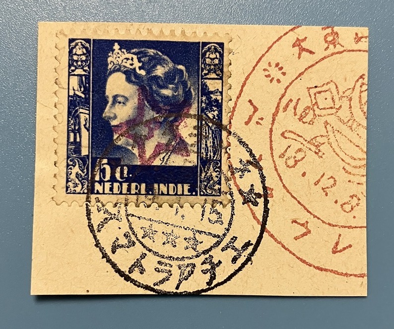 - 南方占領地 切手★オランダ領インド 女王 15c スマトラアチエ 貼り付き 切り取り 詳細不明
